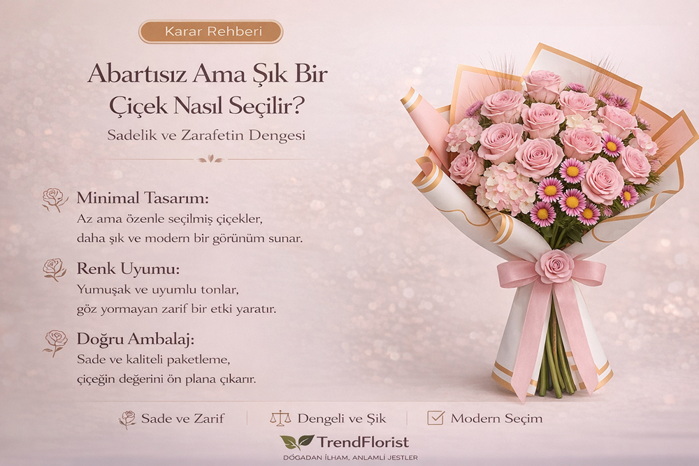 En pratik kural: Şıklık çoğu zaman çiçek sayısından değil; renk uyumu, tasarım dengesi ve sunum kalitesinden gelir.