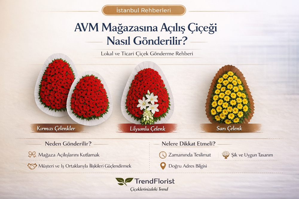 AVM mağazasına açılış çiçeği gönderirken en doğru yaklaşım; açılış atmosferine uygun, kurumsal dili net, görünürlüğü güçlü ve teslimatı yönetilebilir ürünleri tercih etmektir. Bu yüzden çelenkler çoğu senaryoda en güvenli ve en yerinde seçenekler arasında yer alır.