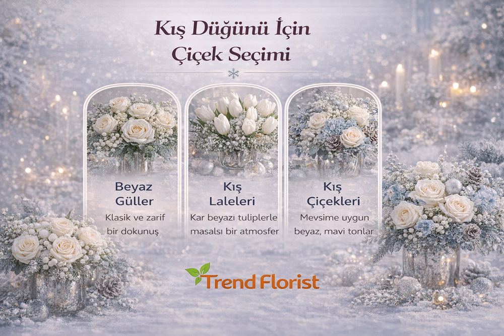 Özellikle daha seçkin ve yüksek algılı bir görünüm isteniyorsa premium tasarımlar kış düğünü atmosferine çok iyi uyum sağlar. Sezonun hediye ve çiçek dili tarafını daha iyi hissetmek için yılbaşında hangi çiçek hediye edilir rehberi de kış atmosferini okuma açısından tamamlayıcı olabilir.
