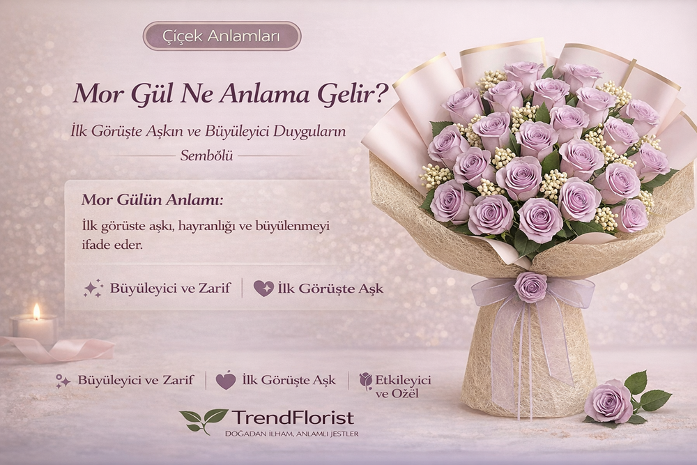 Mor gül, klasik romantik güller arasında daha gizemli, daha zarif ve daha dikkat çekici bir yere sahiptir. Çoğu zaman ilk görüşte aşkı, büyüleyici duyguları, hayranlığı ve etkileyici bir çekimi temsil eder. Bu nedenle mor gül; sıradan bir çiçek jestinden çok, özel bir duyguyu daha estetik ve daha farklı biçimde anlatmak isteyenlerin tercihidir.