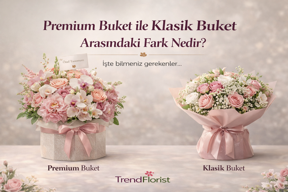 Kısa tanım yapmak gerekirse: klasik buket “güzel ve güvenli tercih”, premium buket ise “daha yüksek etki ve daha güçlü sunum” tarafında konumlanır.