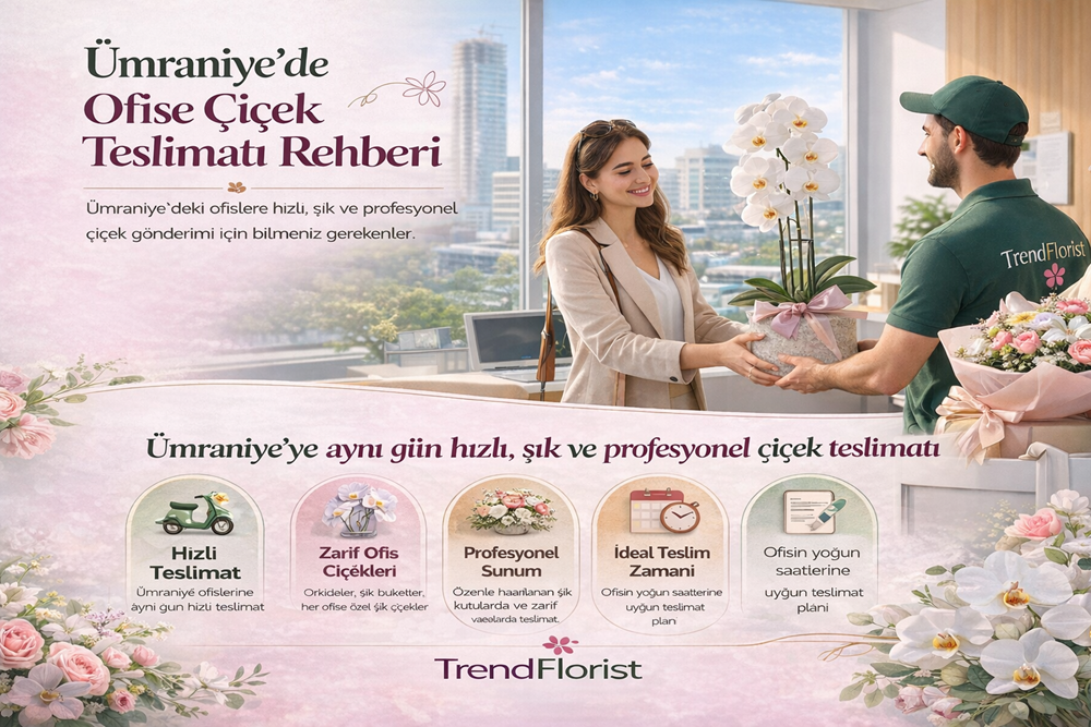 TrendFlorist, İstanbul geneline aynı gün teslimat odağıyla çalışan atölye yapısı sayesinde Ümraniye’de ofis, plaza ve kurumsal teslimat senaryolarında daha planlı bir gönderim deneyimi sunmayı hedefler. Bu yüzden yalnızca açık adres değil; şirket adı, kat numarası, departman bilgisi ve mümkünse alıcının kısa bir iletişim notu da süreci kolaylaştırır. Özellikle kurumsal görünüm isteyen gönderimlerde orkide, daha hacimli sunum istenen gönderimlerde aranjman veya daha zarif seçenekler arayanlar için buket kategorileri güçlü alternatifler sunar.