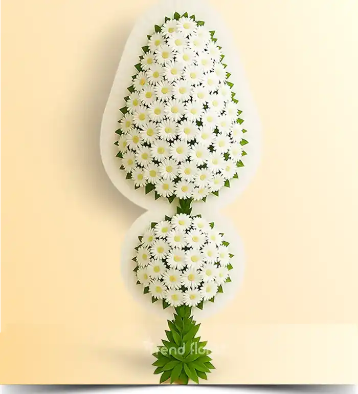 İki Katlı Beyaz Gerbera Çelenk – Elit Düğün & Açılış Tasarımı | Trend Florist®