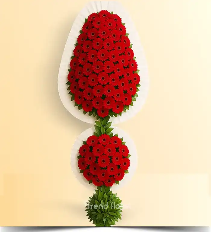 İki Katlı Kırmızı Gerbera Çelenk – Premium Düğün & Açılış Tasarımı | Trend Florist®