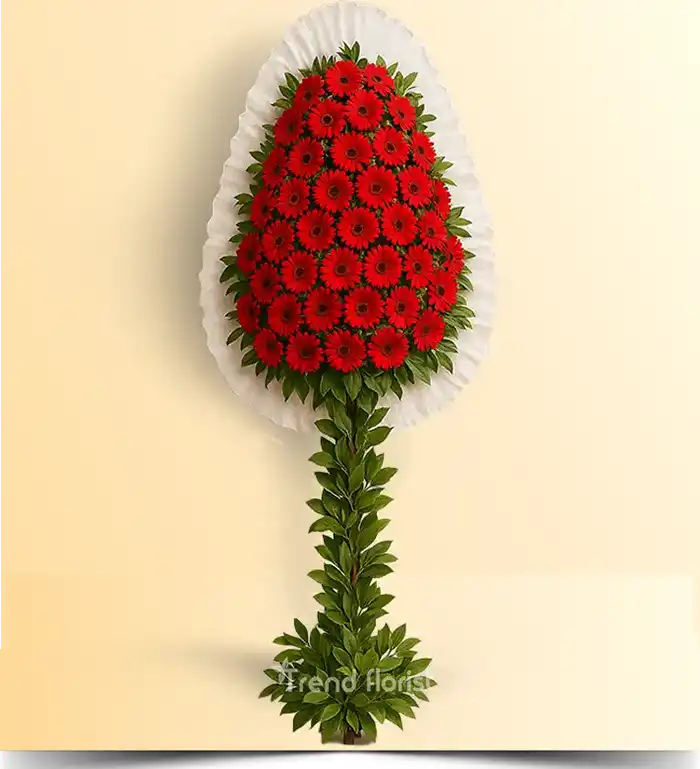 İki Katlı Kırmızı Gerbera Çelenk – Premium Düğün & Açılış Tasarımı | Trend Florist®