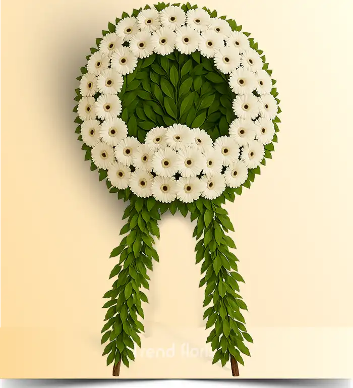 Beyaz Gerbera Cenaze Çelengi – Safiyet ve Huzuru Temsil Eden Klasik Halkalı Tasarım | Trend Florist®