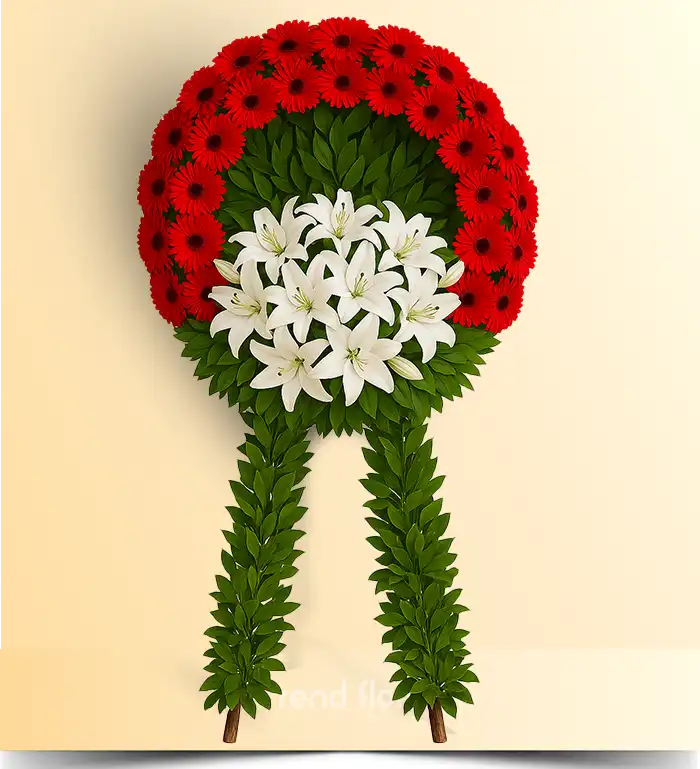 Kırmızı Gerbera ve Beyaz Lilyumlu Cenaze Çelengi – Zarif İki Renkli Tasarım | Trend Florist®