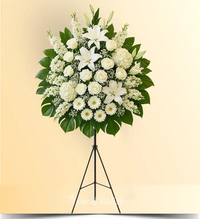 Beyaz Lilyumlu Cenaze Çelengi – Premium Çelenk Tasarım | Trend Florist®