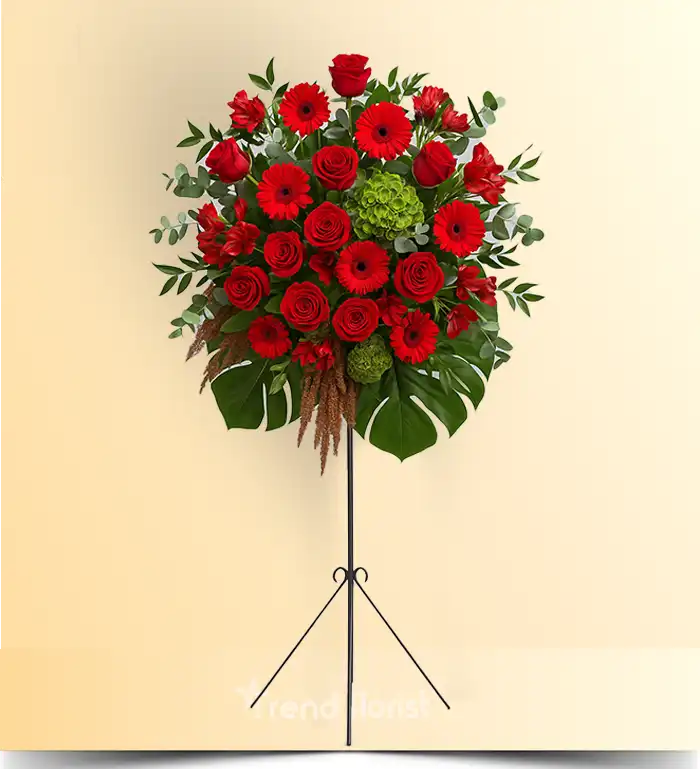 Kırmızı Gerbera Çelenk – Düğün & Açılış İçin Premium Tek Kat Tasarım | Trend Florist®