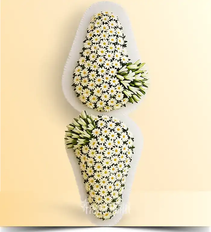 Beyaz gerberalar ve zarif lilyumlar ile hazırlanmış bu iki katlı çelenk, sade ama etkileyici bir duruş sunar. Açılış törenleri, nikahlar veya taziye alanlarında hem estetik hem saygılı bir ifade oluşturur. Trend Florist® profesyonel ekibi tarafından özenle hazırlanır ve İstanbul geneline aynı gün teslim edilir.
