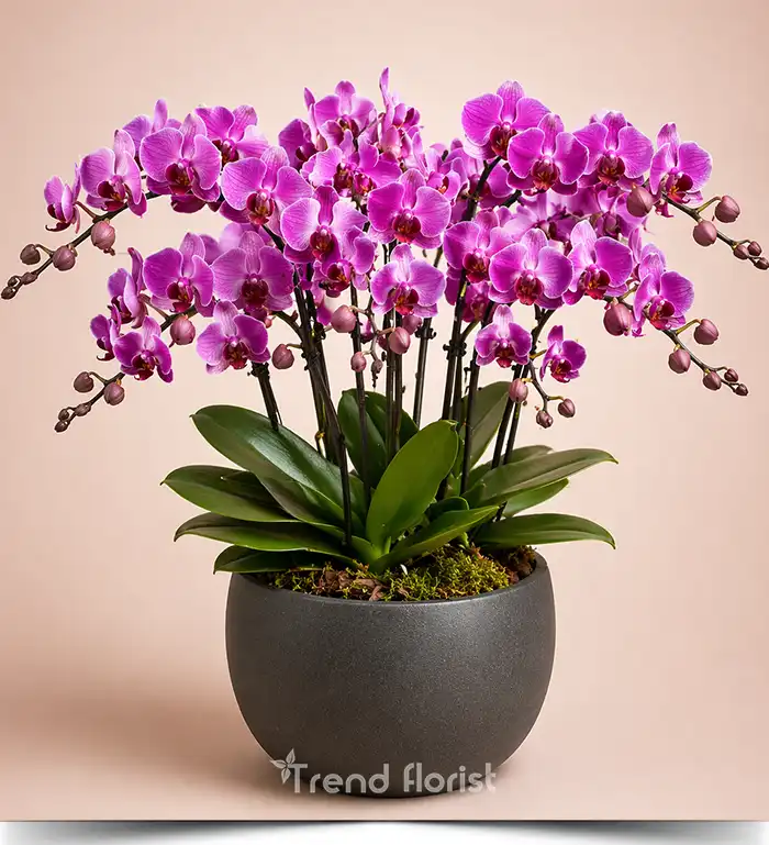 Derin renk tonu, yoğun çiçek formu ve güçlü premium algısıyla öne çıkan bir orkide arıyorsanız bu tasarım; en dikkat çekici ve en etkileyici seçeneklerden biridir.